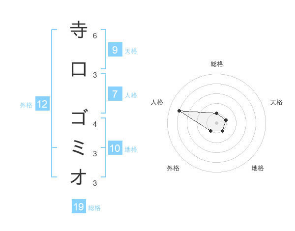 寺口 ゴミオさんを姓名の画数から五運を鑑定