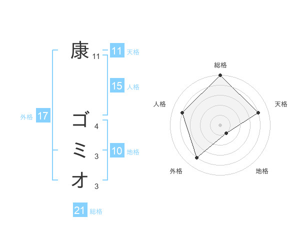 康 ゴミオさんを姓名の画数から五運を鑑定