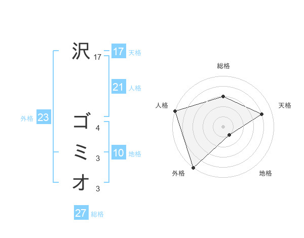 沢 ゴミオさんの総格は27画の3点!