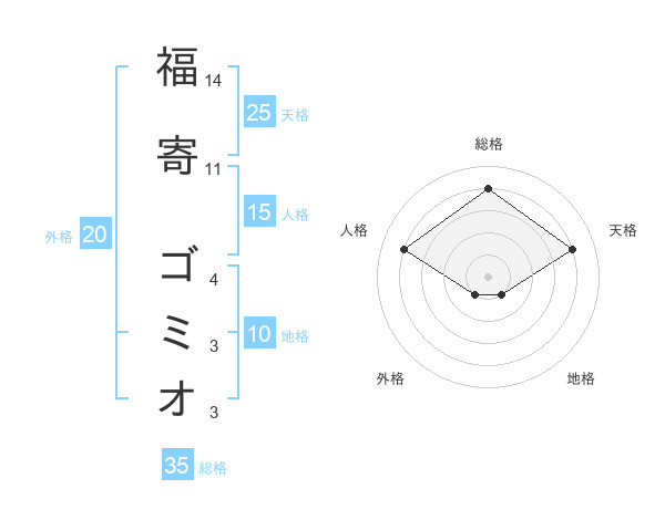 福寄 ゴミオさんの天格は25画の4点!