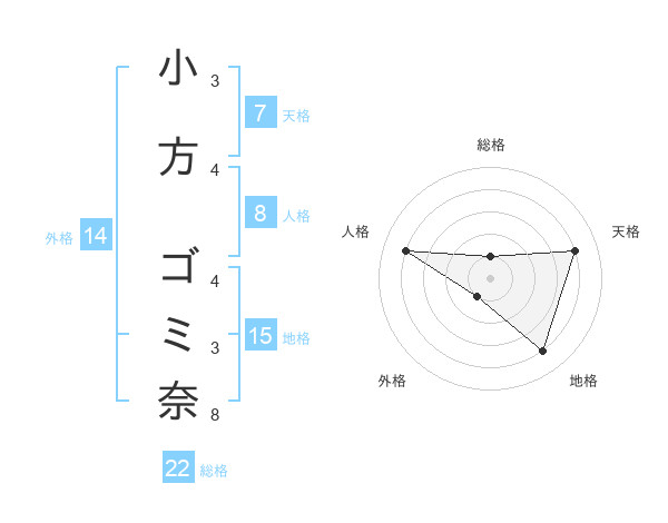 小方 ゴミ奈さんを姓名の画数から五運を鑑定