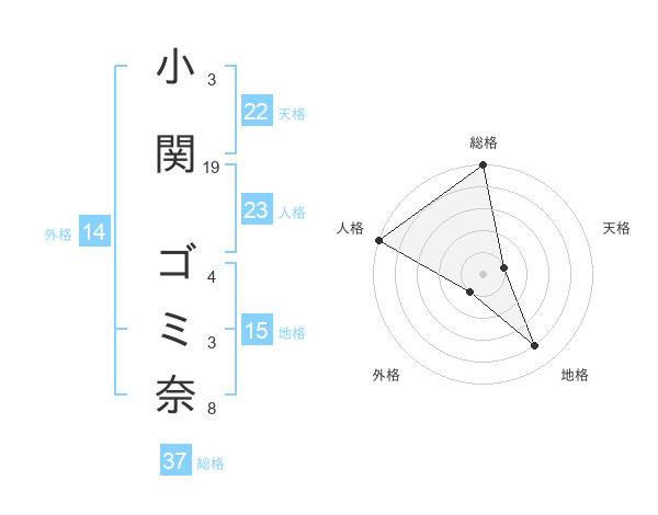 小関 ゴミ奈さんを姓名の画数から五運を鑑定