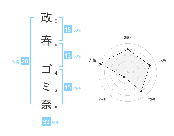 政春 ゴミ奈さんの天格は18画の4点