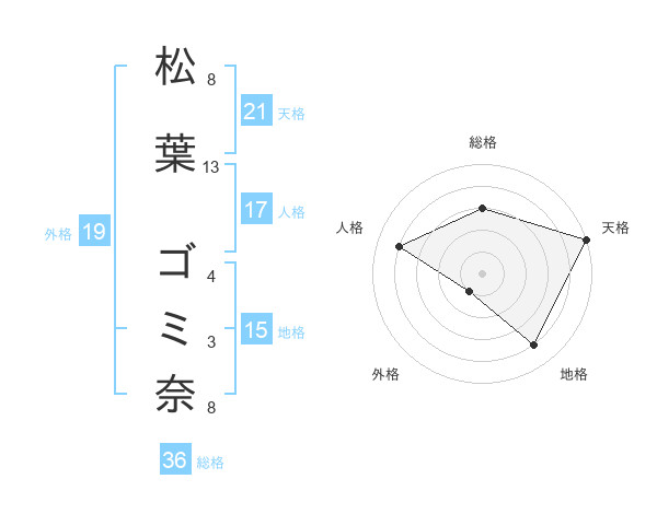 松葉 ゴミ奈さんを姓名の画数から五運を鑑定