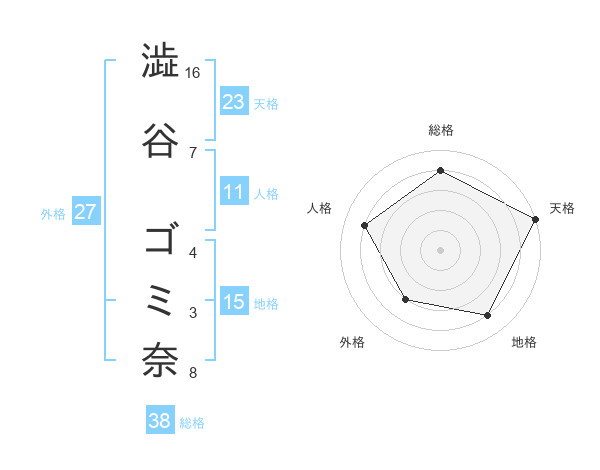 澁谷 ゴミ奈さんの総格は38画の4点!