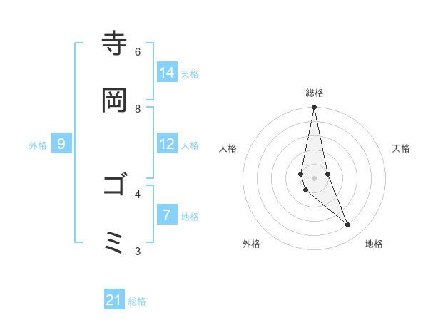 寺岡 ゴミさんの総格は21画の5点!