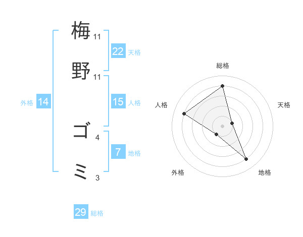 梅野 ゴミさんを姓名の画数から五運を鑑定