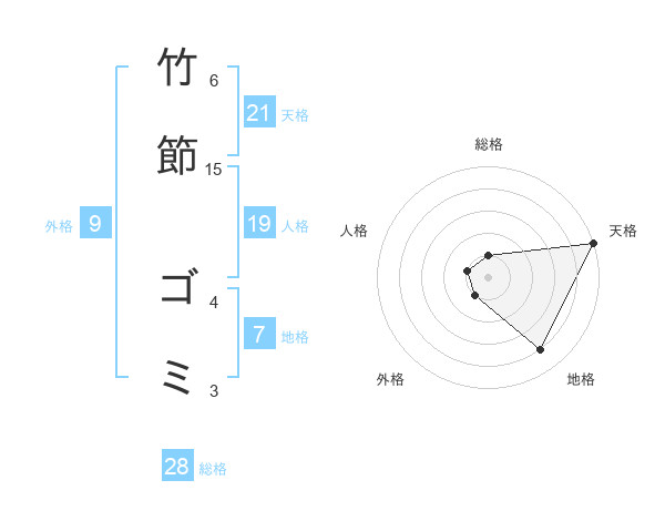 竹節 ゴミさんの天格は21画の5点!