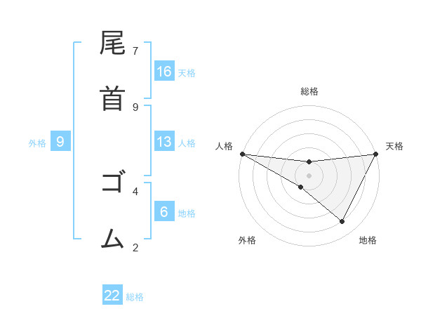 尾首 ゴムさんの総格は22画の1点!