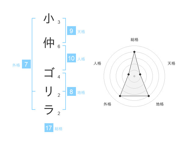 小仲 ゴリラさんの総格は17画の4点!
