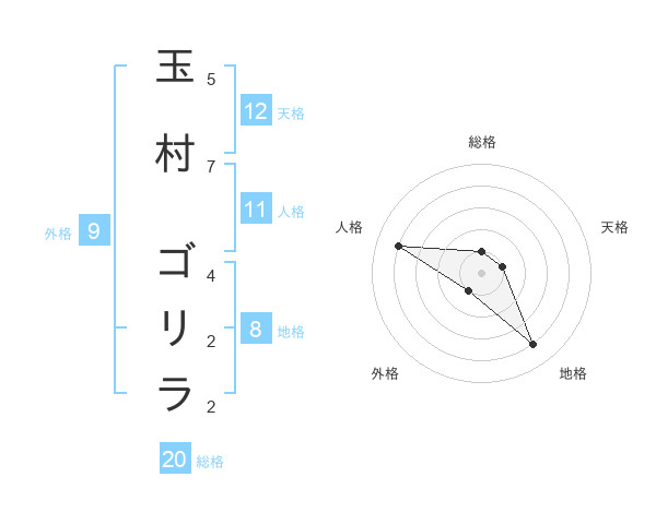 玉村 ゴリラさんを姓名の画数から五運を鑑定