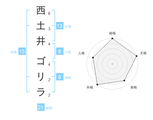西土井 ゴリラさんを姓名の画数から五運を鑑定