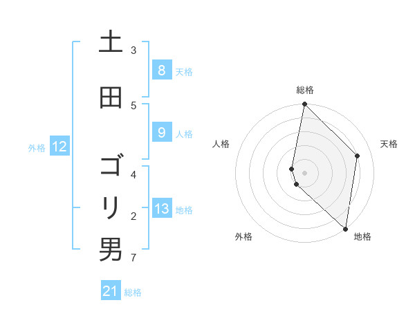 土田 ゴリ男さんを姓名の画数から五運を鑑定