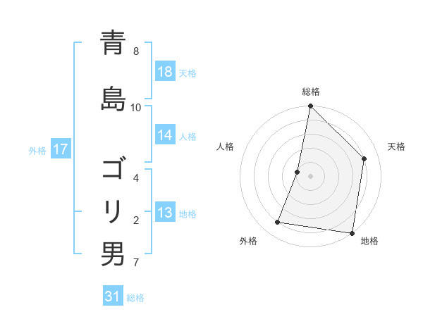 青島 ゴリ男さんを姓名の画数から五運を鑑定