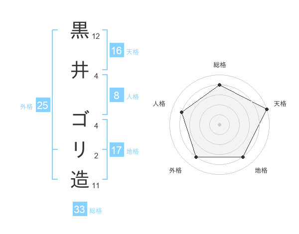 黒井 ゴリ造さんを姓名の画数から五運を鑑定
