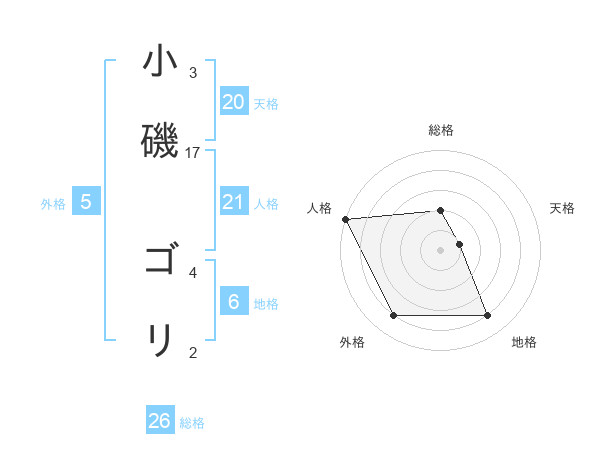 小磯 ゴリさんの総格は26画の2点!