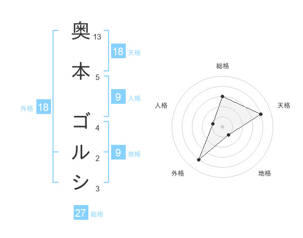 奥本 ゴルシさんの総格は27画の3点!