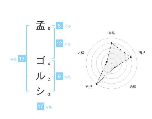 孟 ゴルシさんを姓名の画数から五運を鑑定