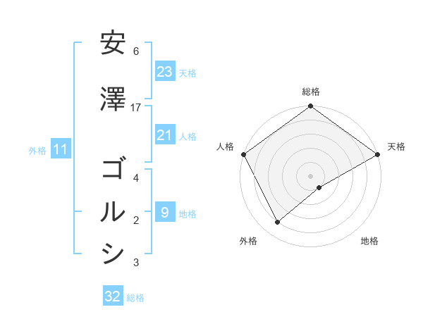 安澤 ゴルシさんを姓名の画数から五運を鑑定
