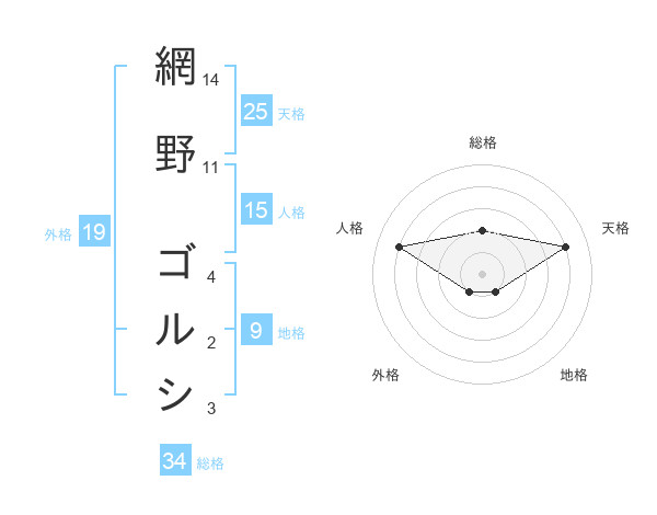 網野 ゴルシさんを姓名の画数から五運を鑑定