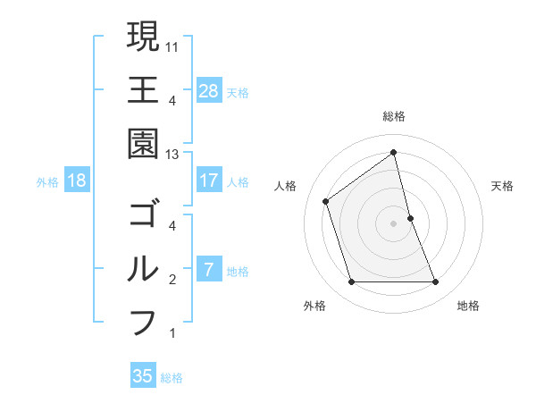 現王園 ゴルフさんを姓名の画数から五運を鑑定