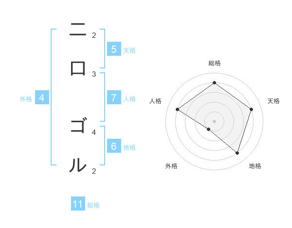二口 ゴルさんを姓名の画数から五運を鑑定