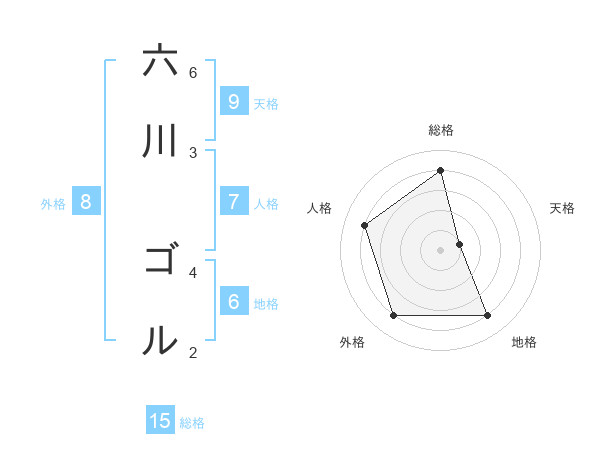 六川 ゴルさんの総格は15画の4点!