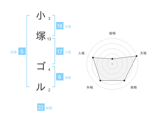 小塚 ゴルさんを姓名の画数から五運を鑑定