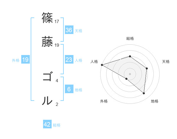 篠藤 ゴルさんを姓名の画数から五運を鑑定