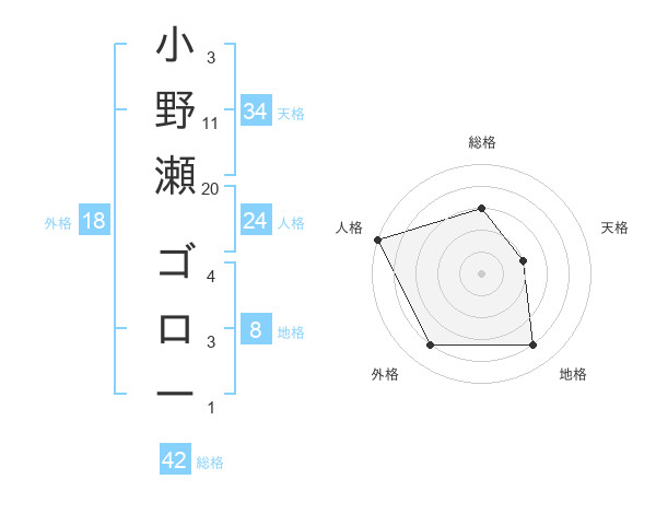 小野瀬 ゴローさんを姓名の画数から五運を鑑定