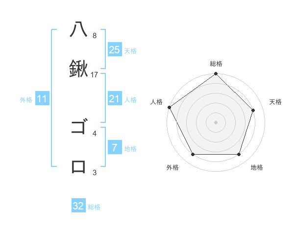 八鍬 ゴロさんの総格は32画の5点!