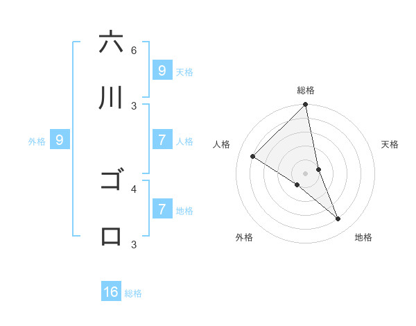 六川 ゴロさんの総格は16画の5点!
