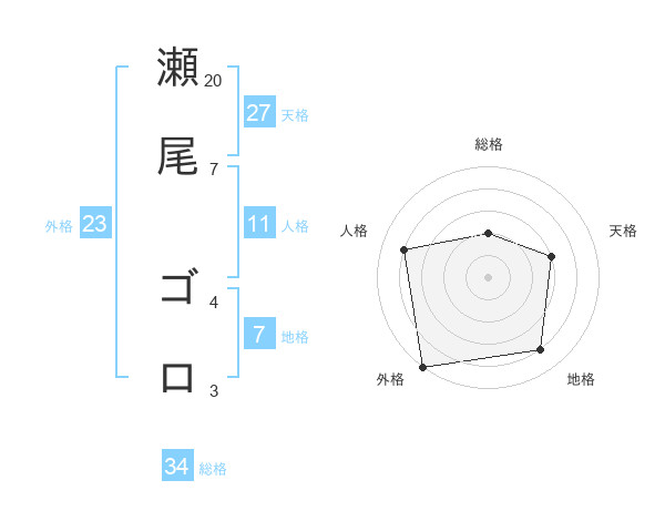 瀬尾 ゴロさんを姓名の画数から五運を鑑定