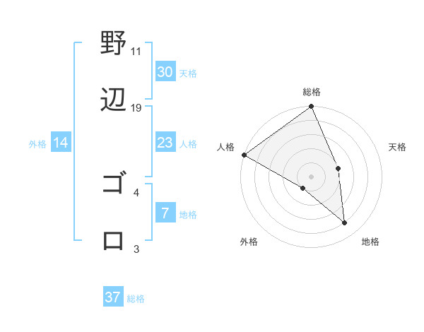 野辺 ゴロさんを姓名の画数から五運を鑑定