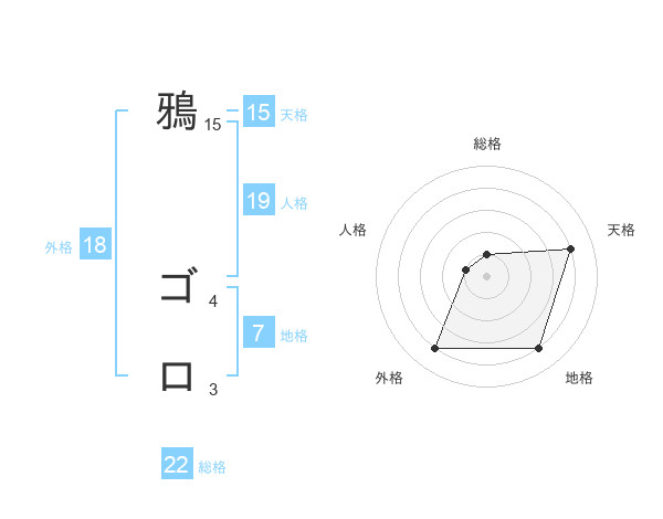鴉 ゴロさんの総格は22画の1点!