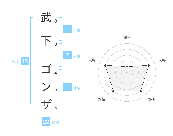 武下 ゴンザさんを姓名の画数から五運を鑑定