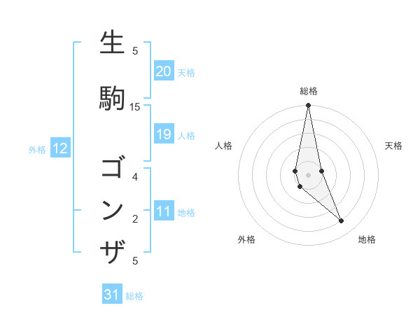 生駒 ゴンザさんを姓名の画数から五運を鑑定