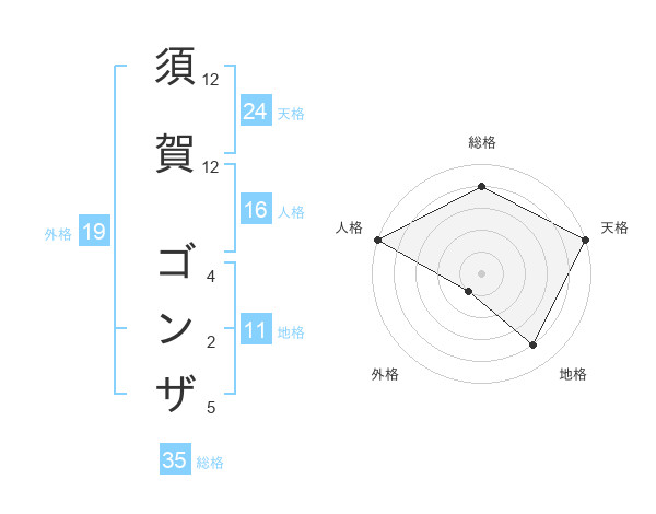 須賀 ゴンザさんを姓名の画数から五運を鑑定