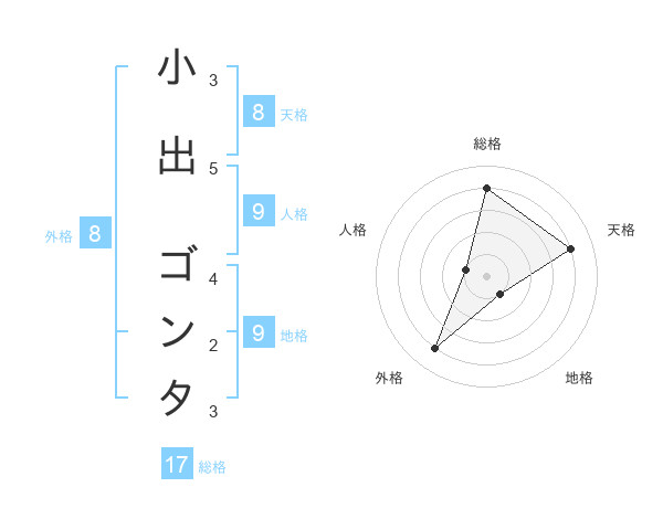 小出 ゴンタさんの総格は17画の4点!
