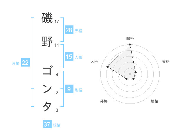 磯野 ゴンタさんの総格は37画の5点!