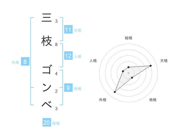 三枝 ゴンベさんを姓名の画数から五運を鑑定