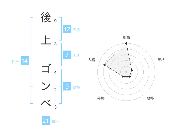 後上 ゴンベさんを姓名の画数から五運を鑑定