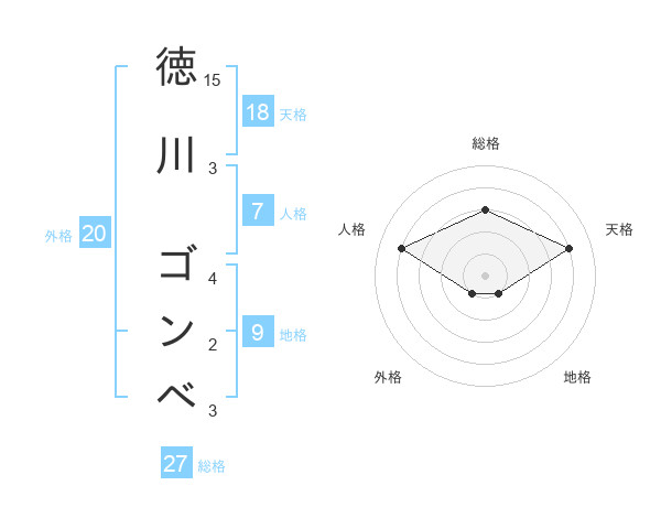 徳川 ゴンベさんを姓名の画数から五運を鑑定
