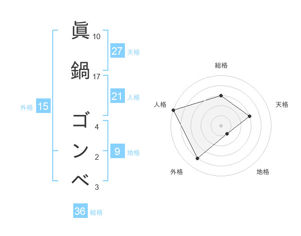 眞鍋 ゴンベさんを姓名の画数から五運を鑑定