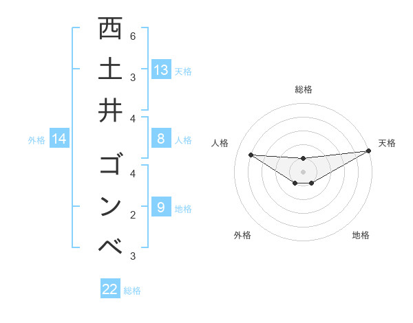 西土井 ゴンベさんを姓名の画数から五運を鑑定