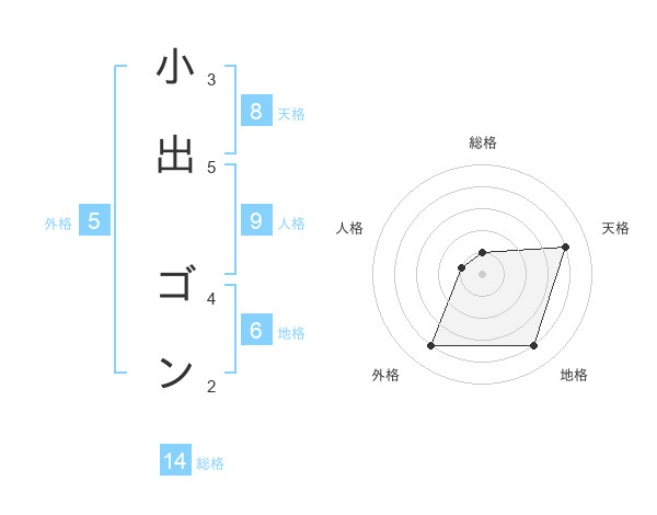 小出 ゴンさんの天格は8画の4点!