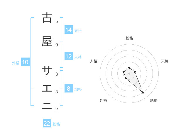 古屋 サエニさんを姓名の画数から五運を鑑定
