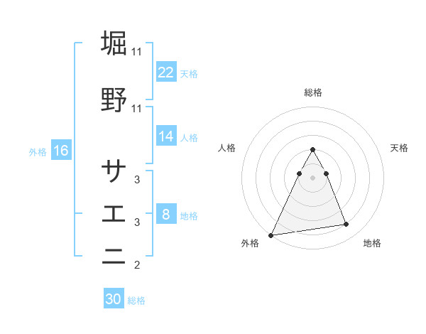 堀野 サエニさんの外格は16画の5点!