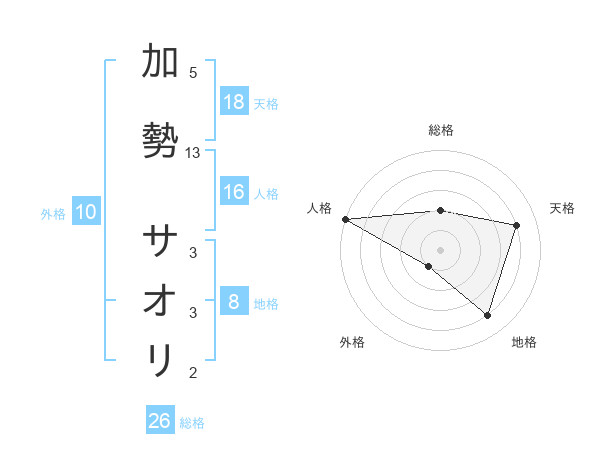 加勢 サオリさんの天格は18画の4点!