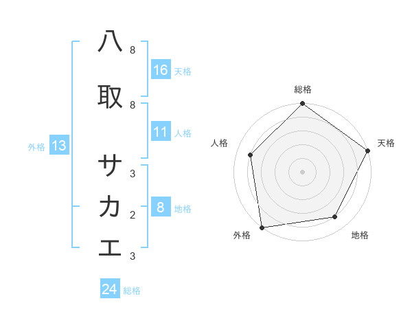 八取 サカエさんの総格は24画の5点!